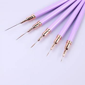 New Product Metal Handle Nail Art Brushes Liner Purple Red Gold 5 Pcs Nail Art Liner Brush Custom Liner Nail Art Brushes