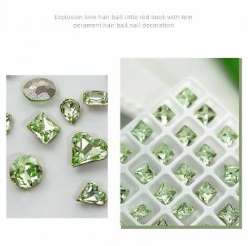 Manicure crystal olive light green oval heart-shaped right-a