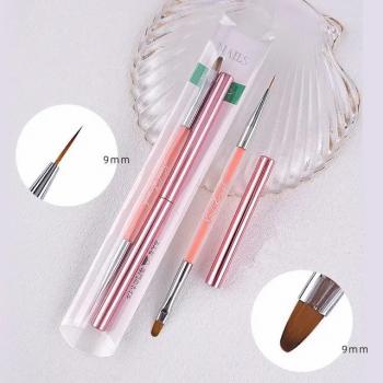 • Double Head Acrylic Resin Nail Art Brush Set Can Be Customised Logo Gel Oval Ombre Liner Angled Fan Nail Brush Wholesale