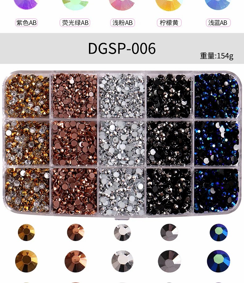 • New Wholesale 15 Grid Crystal AB Strass Flatback Nail Crystal Stone Glass Rhinestone For DIY Crafts Nail Art Accessories